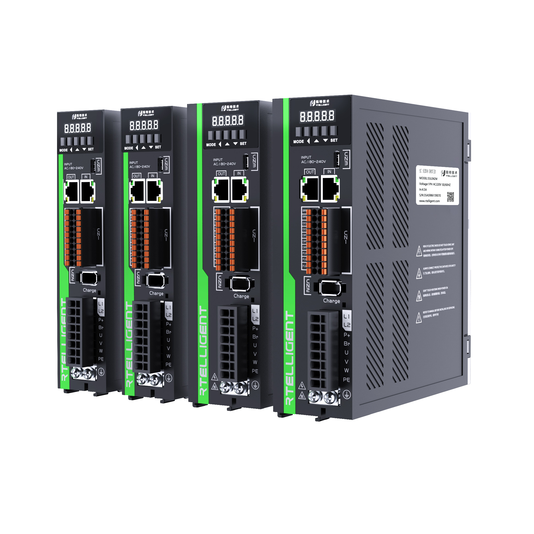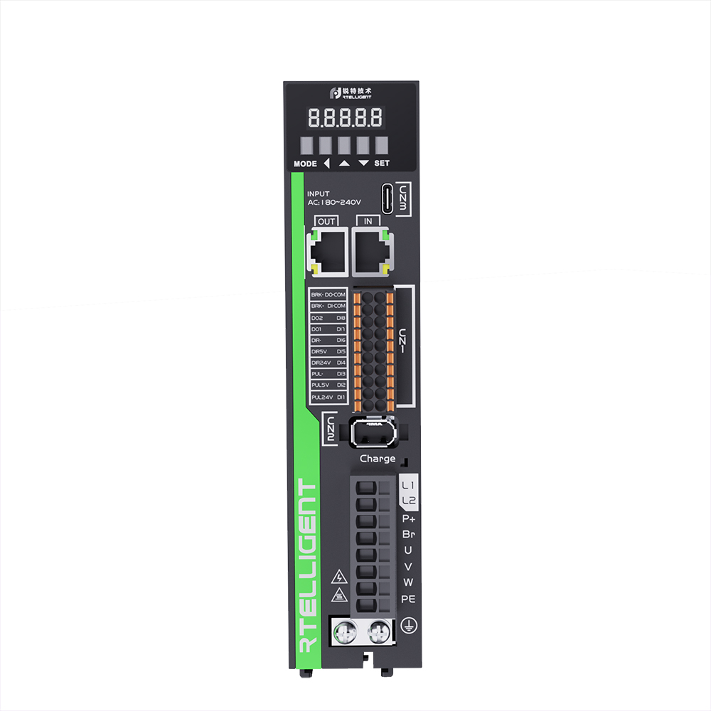 S5L系列伺服是锐特公司研发的经济型伺服产品线,涵盖电机功率范围0.05~2000W,支持基于RS485的MODBUS通讯协议,可实现多台驱动器组网运行。该系列伺服具备位置控制、速度控制、扭矩控制三种基本控制模式,适用于不同的工作环境;