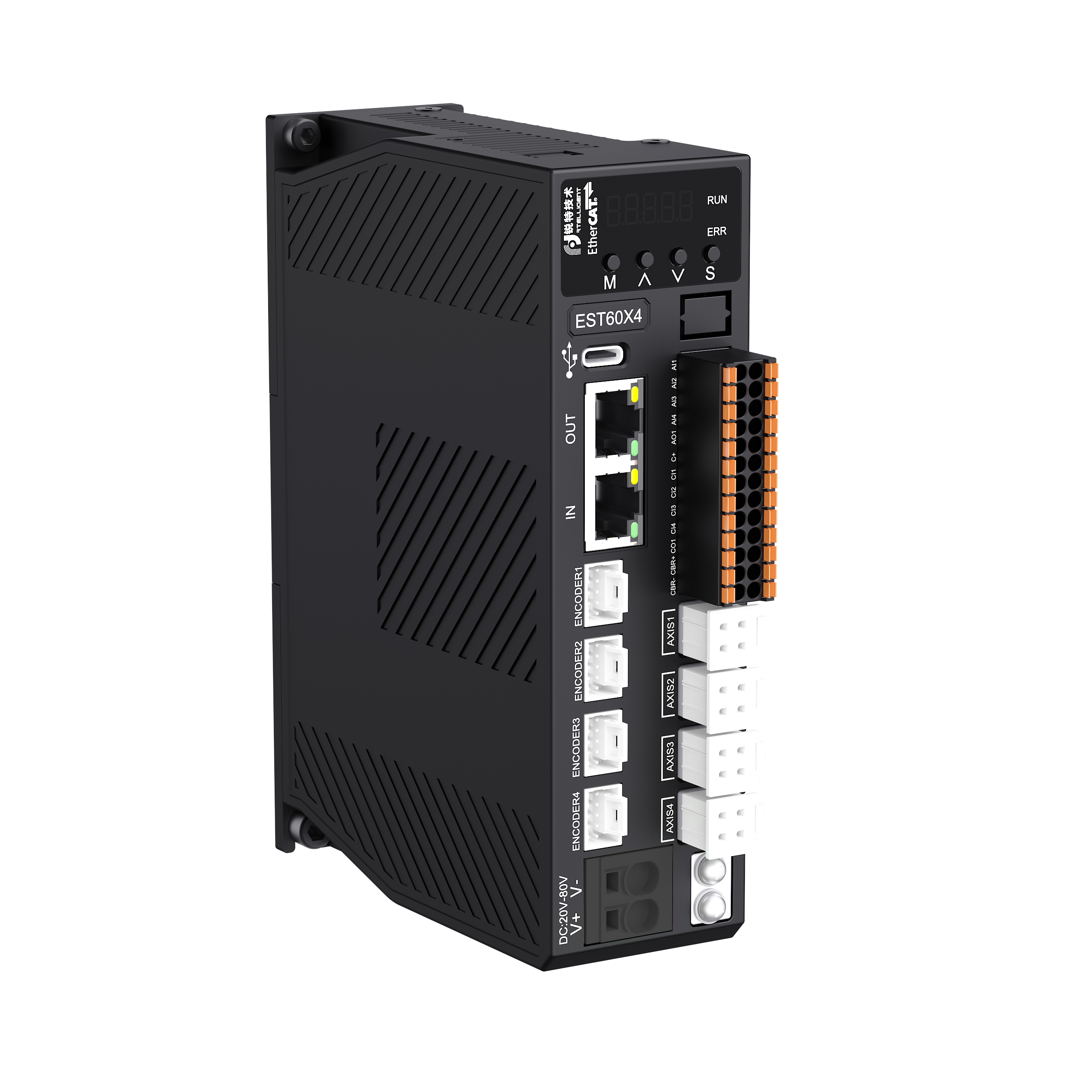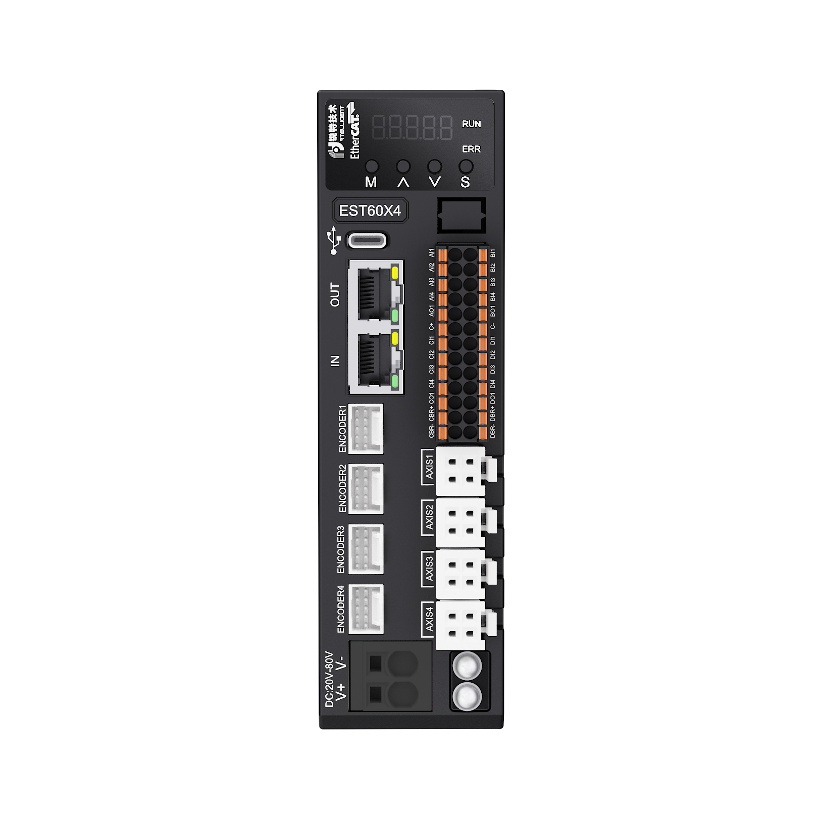 EST60X4 是一款四轴 EtherCAT 总线控制步进电机驱动器,同时集成了智能运动控制器的功能。支持 CoE (CANopen over EtherCAT)。