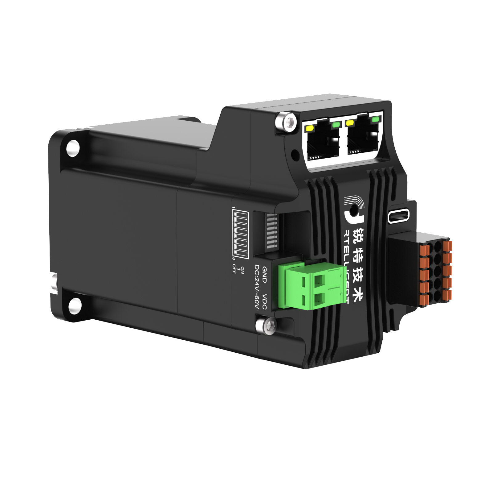4 路光电隔离的数字信号输入:DI1~DI4 为 24V 单端输入,支持 NPN 与 PNP 输入;