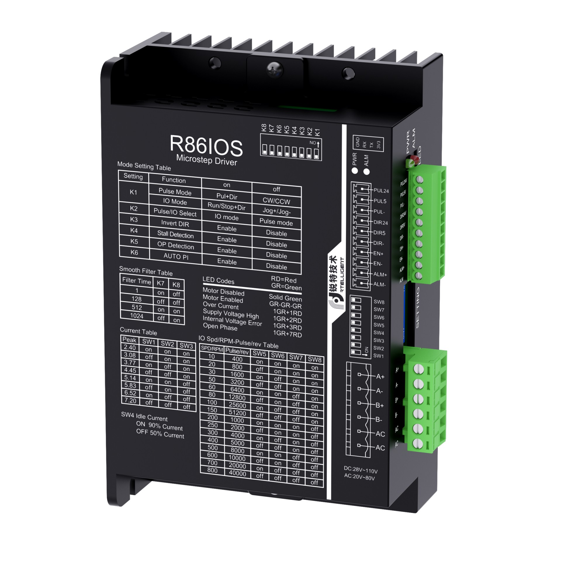锐特IO系列开关量型步进驱动器,内部提供带S型加减速的脉冲串,仅需普通开关量来触发电机启停。相比调速电机,IO系列开关量型步进具有启停平稳、速度均匀的特点,可以简化工程师的电气设计。